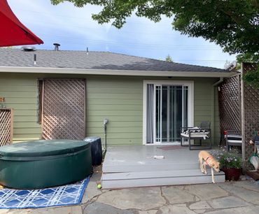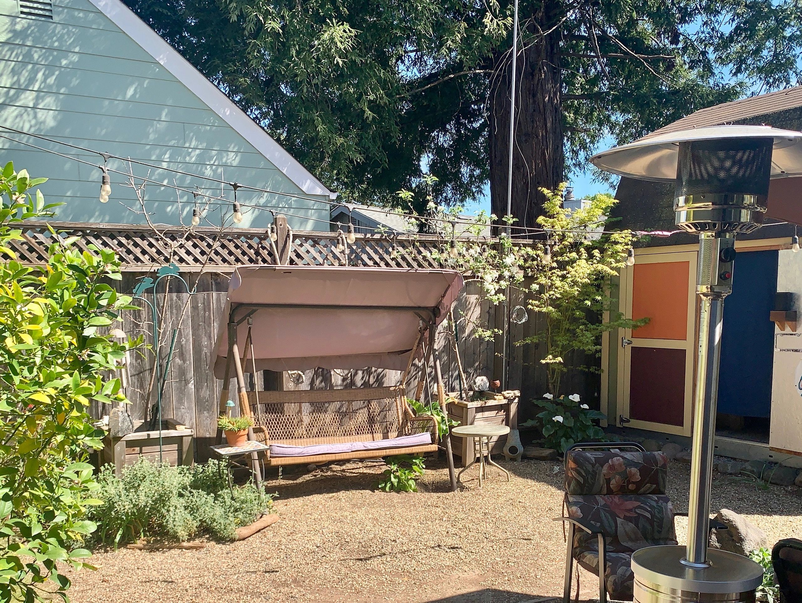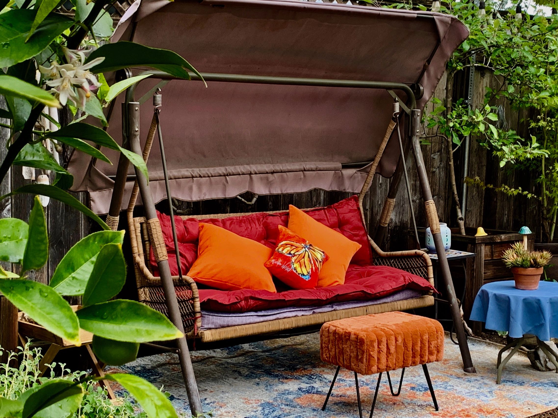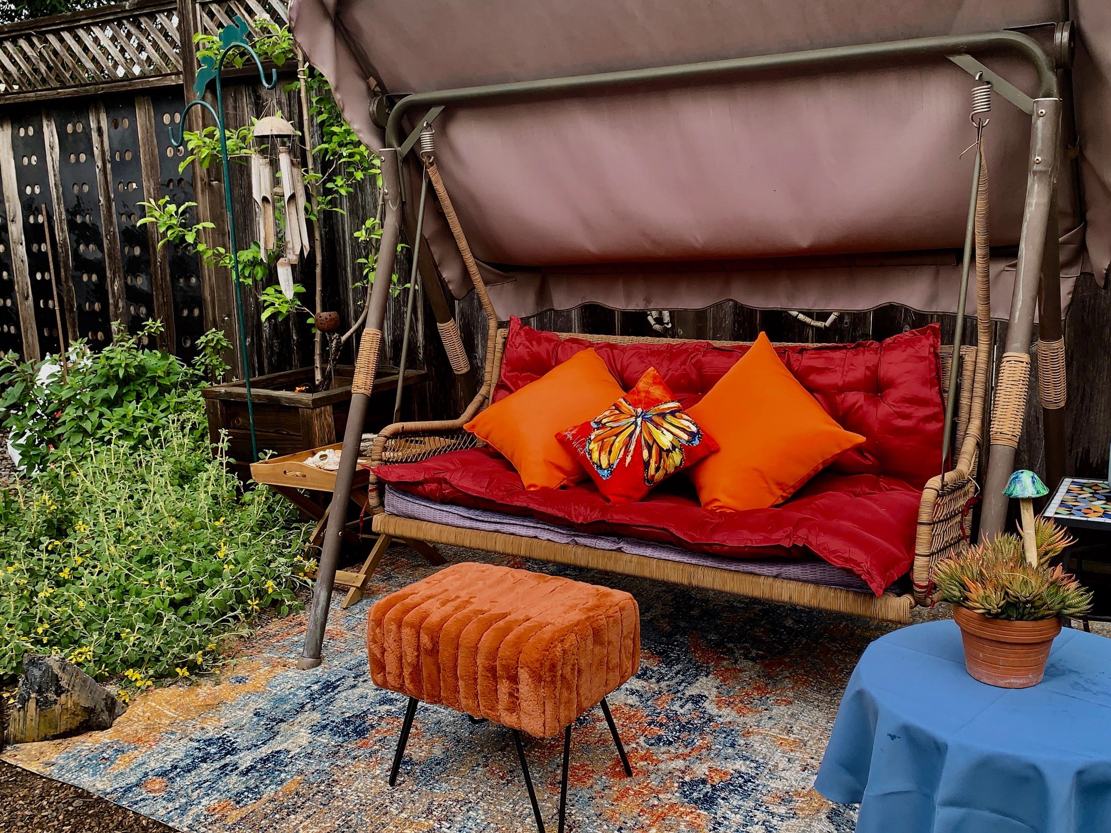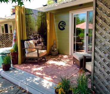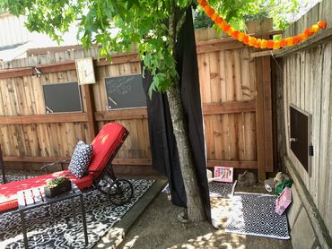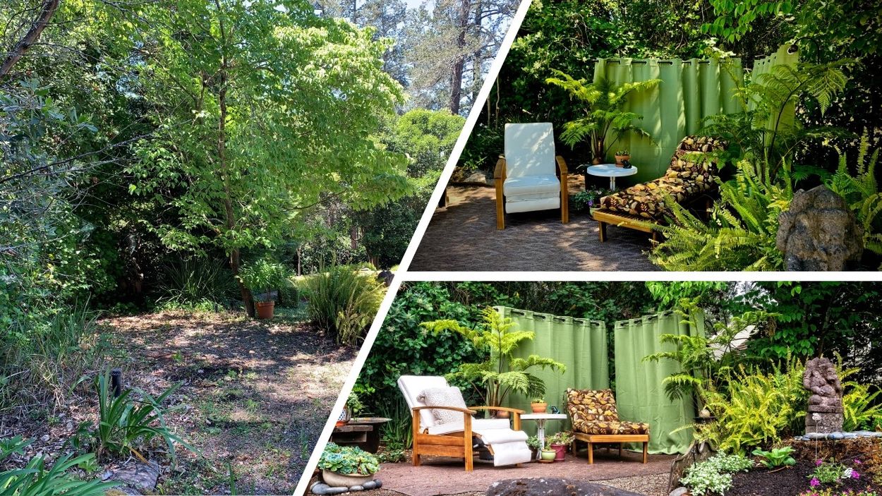 Working with a mix of the creative items Jen already owned, some lush plants and outdoor curtains created a beautiful sanctuary for her and Gunner!